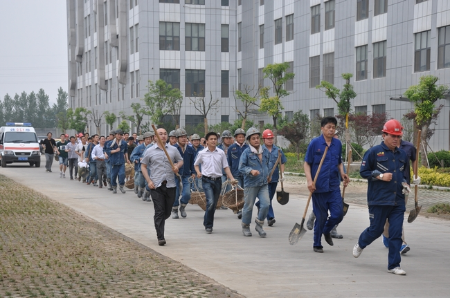 汛期即将临近,为检验雨季“三防”各项工作准备情况,根据矿建工作实际,安居煤矿组织了应急演练活动。下午15:30分,模拟气象台发出橙色预警,预报雨势将由大雨转为暴雨,降雨量可能迅速达到并超过50毫米,矿井工业广场井口及其它地势较低的区域有可能出现被淹没的危险。调度指挥中心接到灾情预报后,立即拉响防汛警报,启动应急预案,同时向井下各施工迎头下达停产撤人命令。各专业小组成员、抢险队员听到警报后迅速响应,各组防汛抢险队员携带抢险工具、物资、车辆设备在副井口附近集结。 15:40分,防汛指挥部成立,抢险救灾总指挥殷然向各组下达抢险命令,分派任务随即开始抢险。主井井口抢险队、副井井口抢险队、机电抢险队、排洪疏通保障队、物资保障对、后勤保障队等各专业队在领到命令后,迅速向各自抢险地点飞奔。15分钟后,主井口、副井口、35KV变电所等重要场所很快建起一道牢固的防洪墙。15:50分,副井最后一罐76人全部安全升井。16:00时,险情解除,抢险成功。