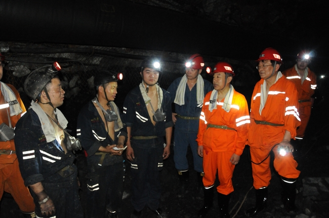 到矿后,乔书记一行直奔三楼更衣室更换工作服,深入到安居煤矿千米井下掘进迎头,了解掘进队伍、施工人员、班组建设等工作。乔书记一行先后察看了安居煤矿东翼轨道大巷、火工用品储存库、井下制冷硐室、首采区南翼运输巷等施工地点。