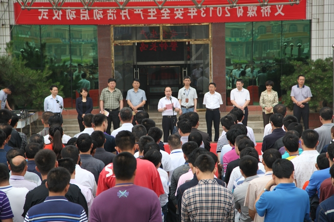 6月1日上午9时,义桥煤矿在工业广场举行 “安全生产月”活动启动仪式暨千人签字安全宣誓活动。矿长张新华对安全生产月活动作动员讲话和工作部署,仪式由安全矿长陈宝技主持,矿副总工程师以上领导、机关科室部门负责人及生产区队干部职工代表近600人参加启动仪式大会。