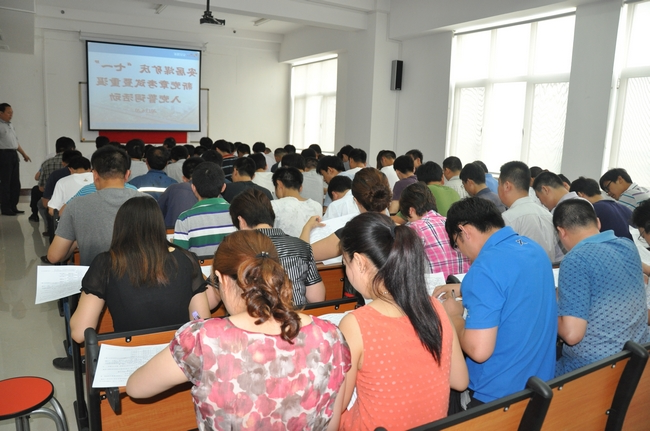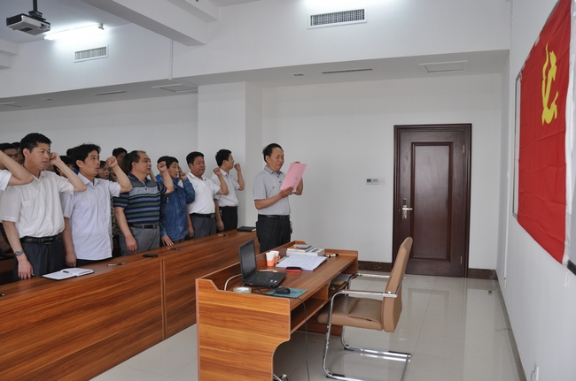 在成为人的带领下,朗朗诵念入党宣誓词,重温神圣的时刻,向党和人民作出庄严承诺。随后,全体党员进行了新党章知识闭卷考试。