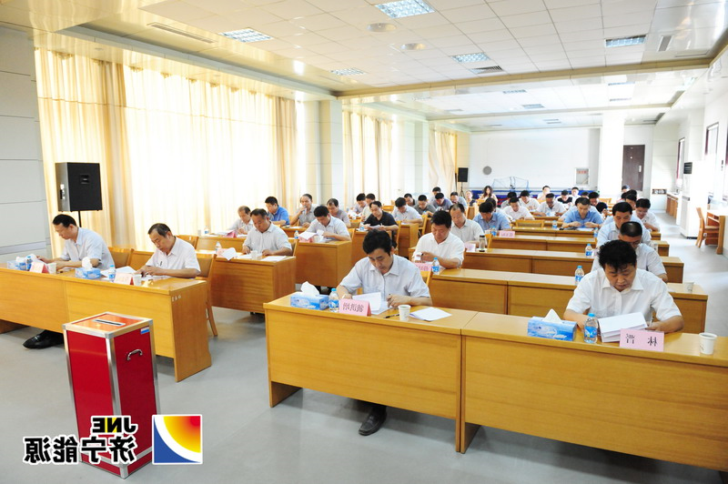 由市国资委外派监事和济宁能源发展集团政治部组成的计分小组计分现场