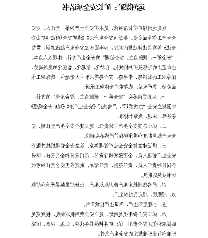 运河煤矿:矿长安全承诺书